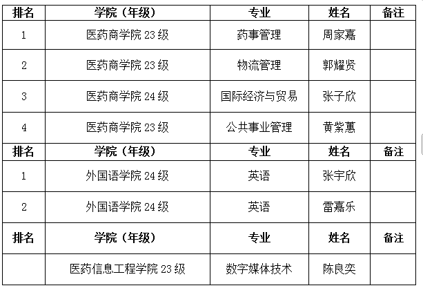 (分学院、年级按优先顺序排列)