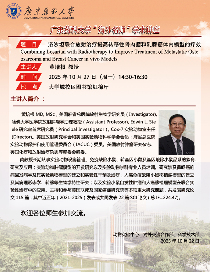 广东药科大学“海外名师”学术讲座(2025年第14期)